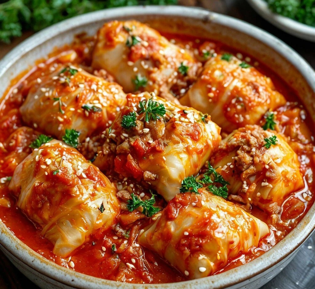 Подавайте горячие голубцы, щедро полив их ароматным овощным соусом. Украсьте свежей зеленью для дополнительного цвета и аромата. Это блюдо станет настоящим украшением любого стола, а также любимым лакомством для всей семьи!