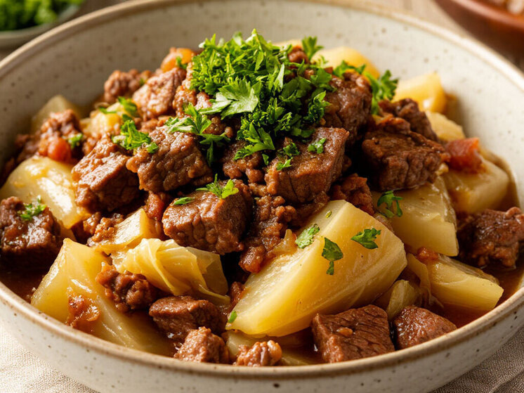 Говядина и капуста создают гармоничное и сытное блюдо, которое не только радует своим вкусом, но и обогащает полезными веществами. Следуя принципам здорового питания, этот рецепт станет настоящей находкой для ужина, прекрасно подходя как для повседневных трапез, так и для особых случаев.