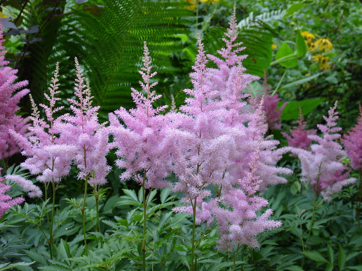 Каждая астильба обладает уникальной формой соцветия: от узких пирамидальных до широких ромбических. Поникающие цветоносы тоже имеют свой шарм: некоторые слегка наклоняются, в то время как другие элегантно свисают. Листва варьируется от матовой до блестящей, с оттенками от салатового до бронзового, позволяя использовать астильбу в самых различных сочетаниях.