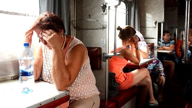В обычном вагоне без работающего кондиционера находилась полная женщина средних лет, которая, как и все пассажиры, страдала от жары. Несмотря на жару, ее тон кожи и одежда не выдавали характерного запаха пота, в отличие от других пассажиров, что стало предметом обсуждения между двумя путешественниками.