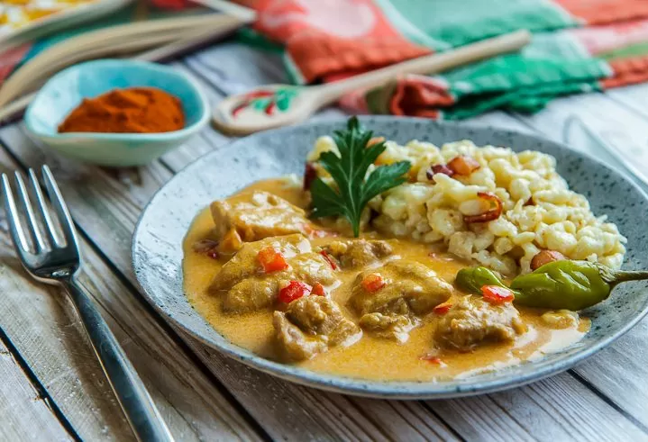 Паприкаш подают горячим, в паре с гарниром, идеально гармонирующим с насыщенной подливкой. Это блюдо по достоинству оценят не только любители куриного мяса, но и все, кто стремится удивить гостей необычным и сытным яством.