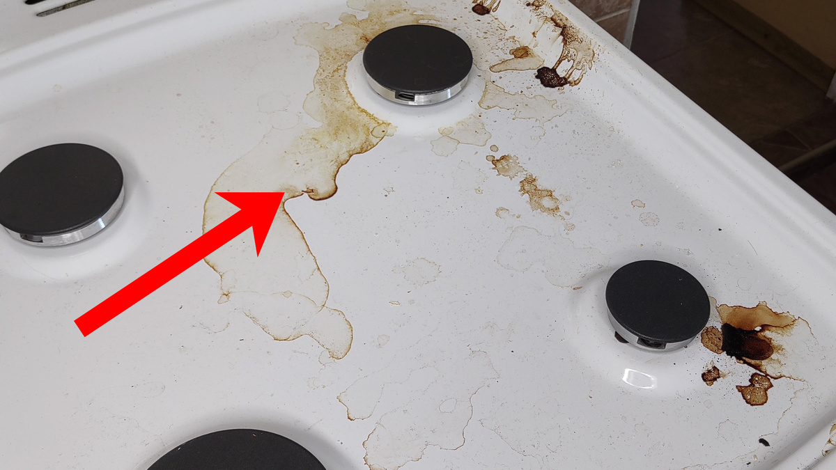 - Кипяток: аккуратно налить немного горячей воды на соду, стараясь избегать камер конфорок.