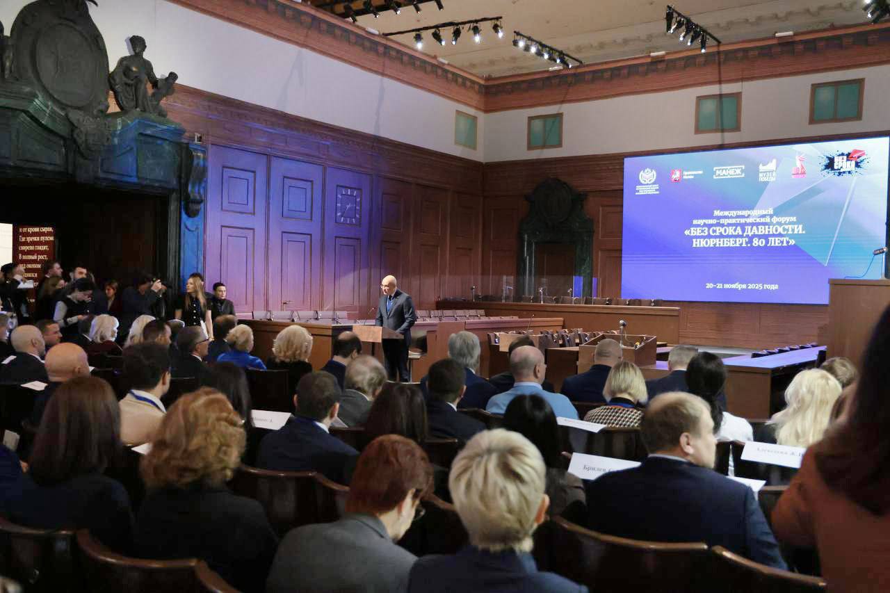 Масштабный форум, посвященный 80-летию начала Нюрнбергского процесса, начал свою работу 20 ноября. Организатором выступил Национальный центр исторической памяти при Президенте Российской Федерации. Приветствие участникам форума направил Президент Российской Федерации Владимир Путин. В открытии мероприятия приняли участие вице-премьер Татьяна Голикова, директор СВР, председатель Российского исторического общества Сергей Нарышкин, вице-спикер Государственной Думы РФ Ирина Яровая, губернаторы ряда российских регионов, известные ученые, журналисты и общественные деятели.