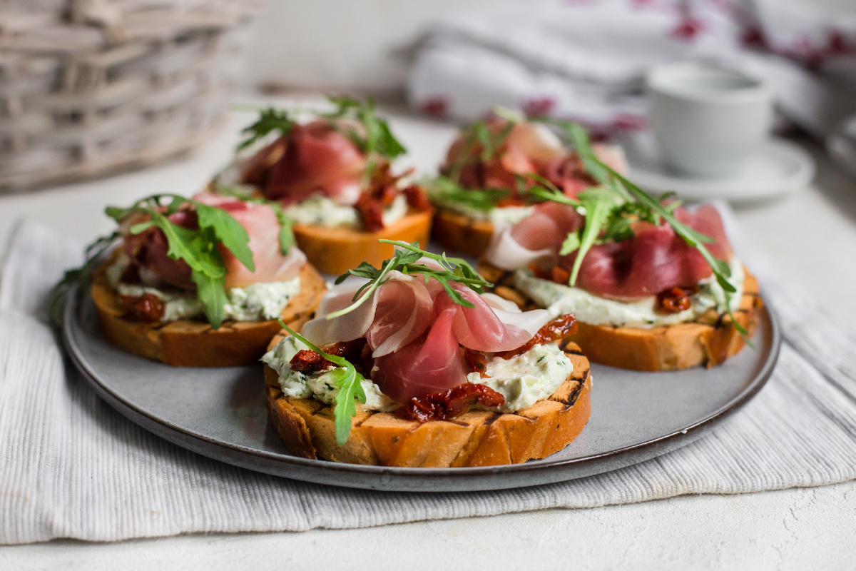 Сочетание прошутто, вяленых помидоров и чудесного песто в этих тостах обязательно порадует не только гурманов, но и всех любителей итальянской кухни. Легкие в приготовлении и невероятно аппетитные, они идеально подойдут как для быстрого перекуса, так и для праздничного стола.
