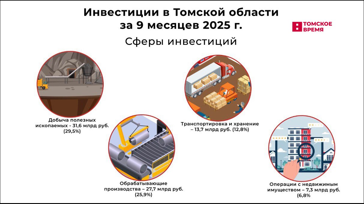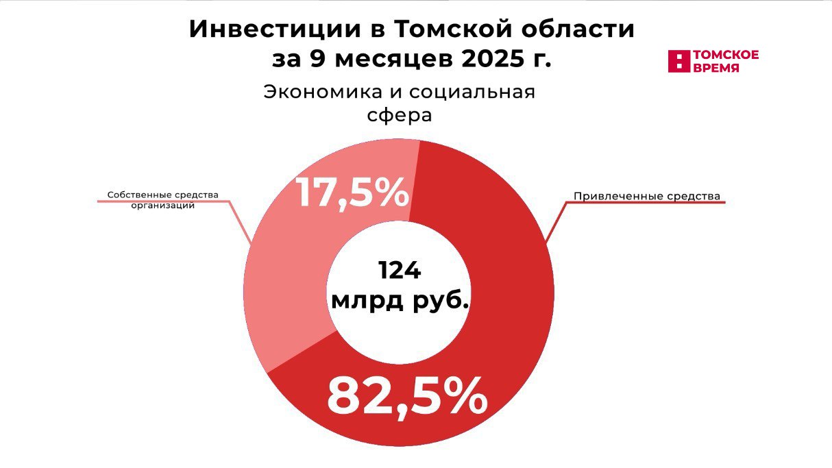 Томскстат подвёл итоги развития экономики и социальной сферы Томской области за 9 месяцев 2025 года. В общей сложности в основной капитал было направлено 124 млрд рублей (рост — 2,9%).