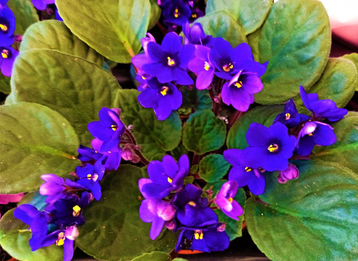 - Узамбарская фиалка (сенполия) — это маленькая, но яркая красавица, которую лучше всего разместить подальше от солнечного света. Фиалки любят умеренное освещение и могут радовать глаз разнообразными цветами в течение долгого времени. Эта неприхотливая красавица не требует много ухода, ей достаточно редкого полива, и ей прекрасно подойдет небольшой горшочек.