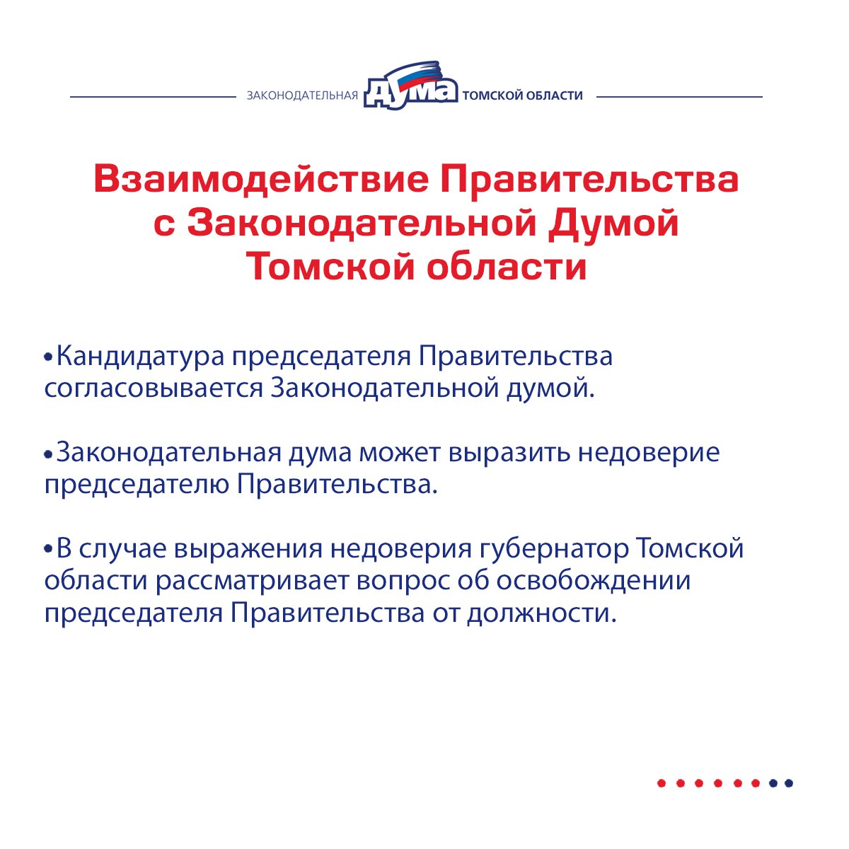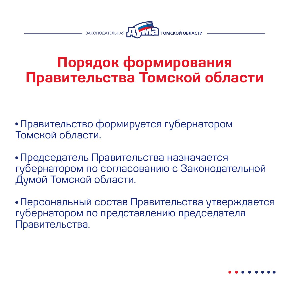 На 49-м собрании Законодательной думы депутаты проголосовали за изменения в Устав (Основной Закон) региона и приняли закон о Правительстве Томской области. Это формирует правовую и организационную основу для создания в регионе высшего постоянно действующего исполнительного органа — Правительства Томской области.