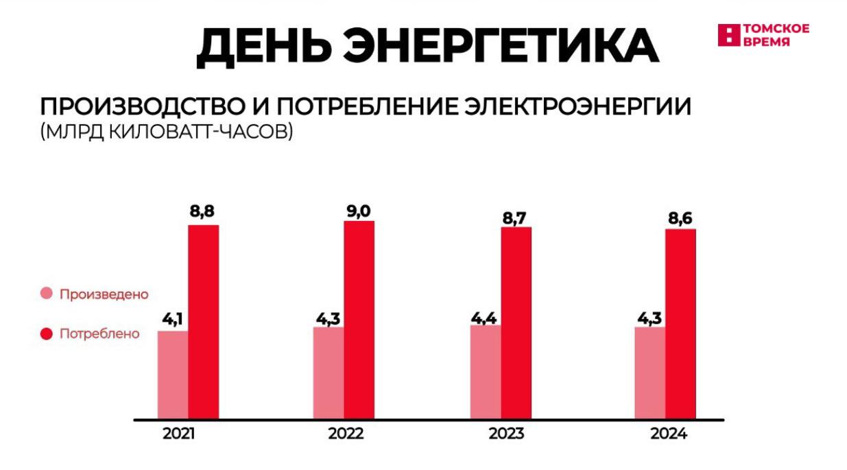 Произведено 4,3 млрд кВт·ч электроэнергии, но потреблено вдвое больше — 8,6 млрд кВт·ч. Главный «пожиратель» — промышленный комплекс (75%)