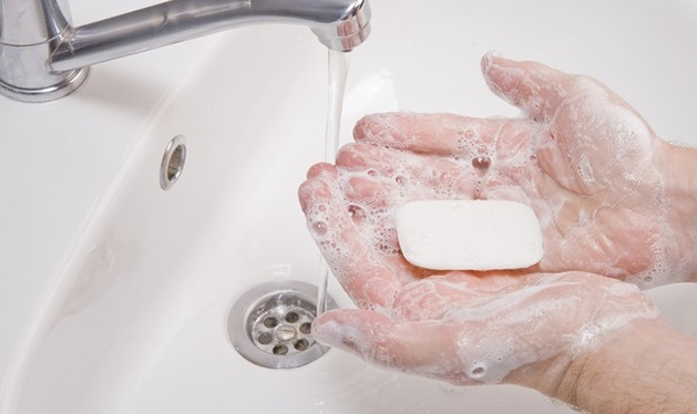 - Только после того, как основные загрязнения смыты, следует использовать мыло и тёплую воду для тщательной дезинфекции.