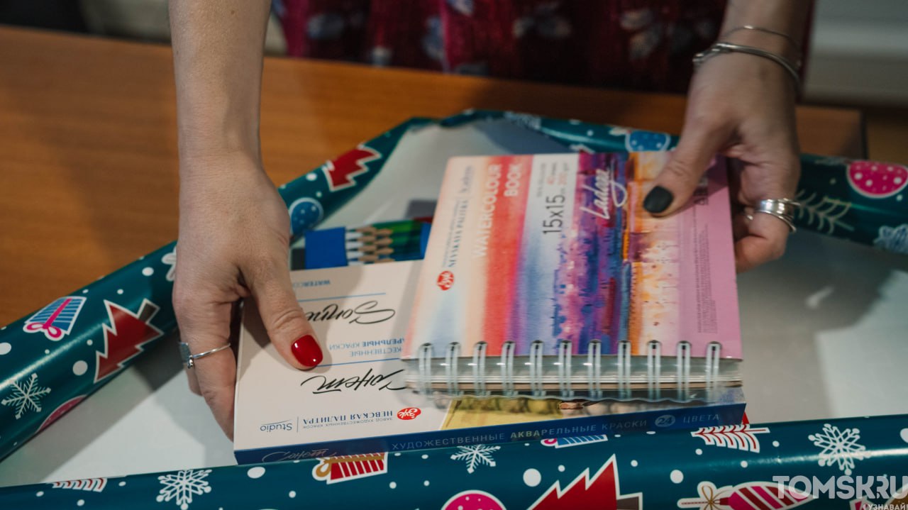 Механика простая: на елке — шарики с желаниями детей из малообеспеченных семей, сирот и ребят с ОВЗ. Снимаешь шар, сканируешь QR-код, и становишься для кого-то Дедом Морозом. Мы «забрали» девятилетнюю Дарью и собрали для нее творческий подарок — с карандашами, акварелью и скетчбуком.