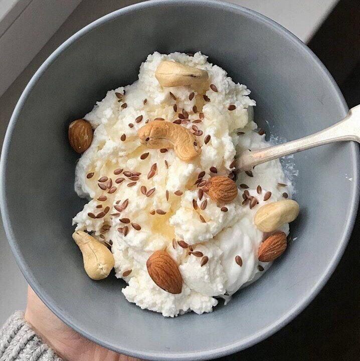 - Творог с орехами или семечками: Творог является источником высококачественного белка, который долго переваривается. В сочетании с горстью орехов или семечек, богатых полезными жирами и клетчаткой, он обеспечивает длительное чувство насыщения.