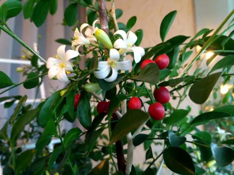 Эта комнатная красавица стала настоящим ароматным украшением любого интерьера. Мурайя отличается способностью самостоятельно формироваться в миниатюрное деревце, создавая необычную композицию. Белоснежные цветы, которые она выбрасывает, не только красивы, но и превращаются в ярко-красные плоды, что добавляет характер в общую картину. Несмотря на свою экзотичность, мурайя не требует особого ухода и отлично чувствует себя в домашних условиях.