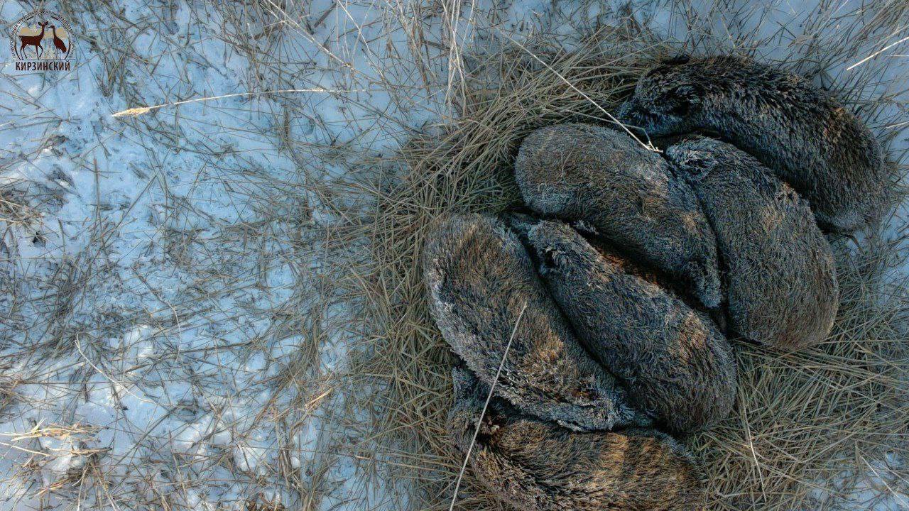 «Ну, мы!». Посмотрите, как кабанчики сбились в гнездо в заказнике «Кирзинский».