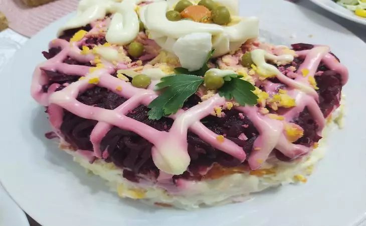 Есть даже вегетарианский вариант этого популярного салата. В нем селедку заменяют водорослями или же морской капустой. Если говорить о сыром луке, можно взять вместо него жареный овощ. Также вместо рыбы некоторые люди используют вареное мясо, так что вы не ограничены в экспериментах на кухне.