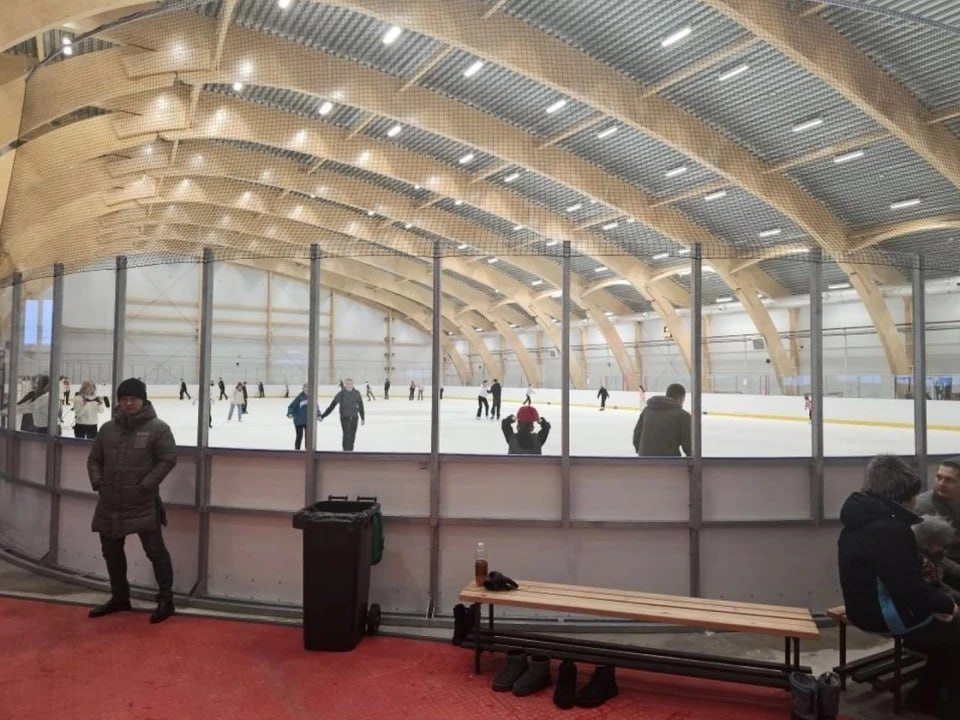 В новогодние праздники в городе прошло техническое открытие арены. Площадь объекта — более 3,3 тысячи квадратных метров, из них 1,8 тысячи занимает лед. Одновременно на корте могут находиться до 100 человек.