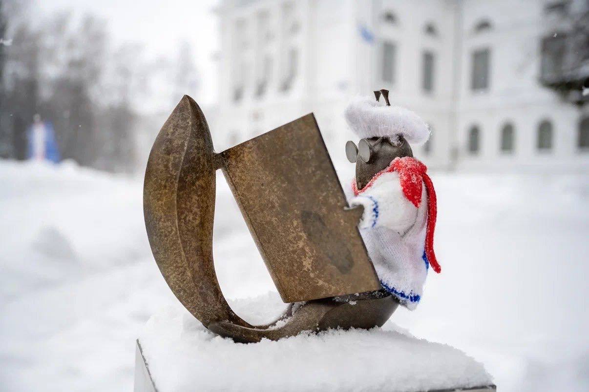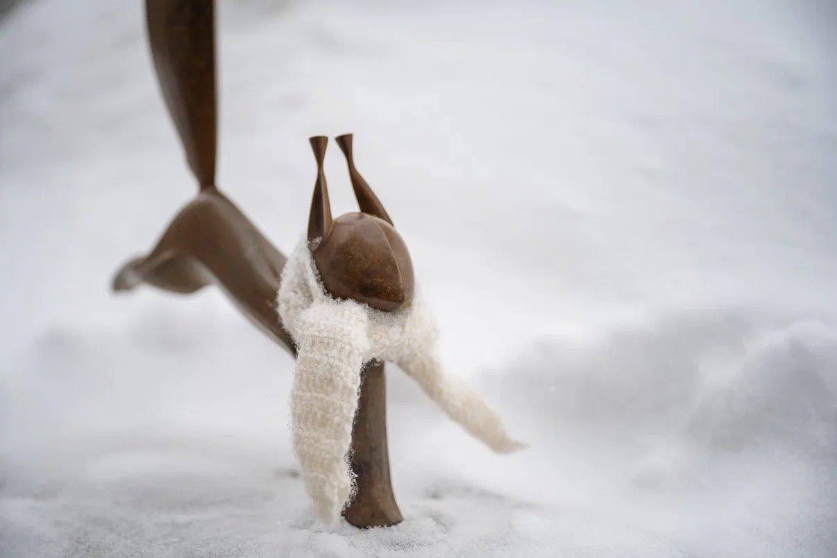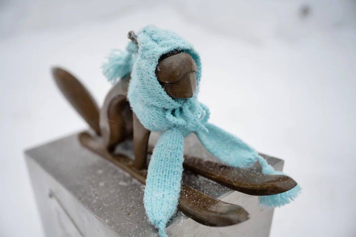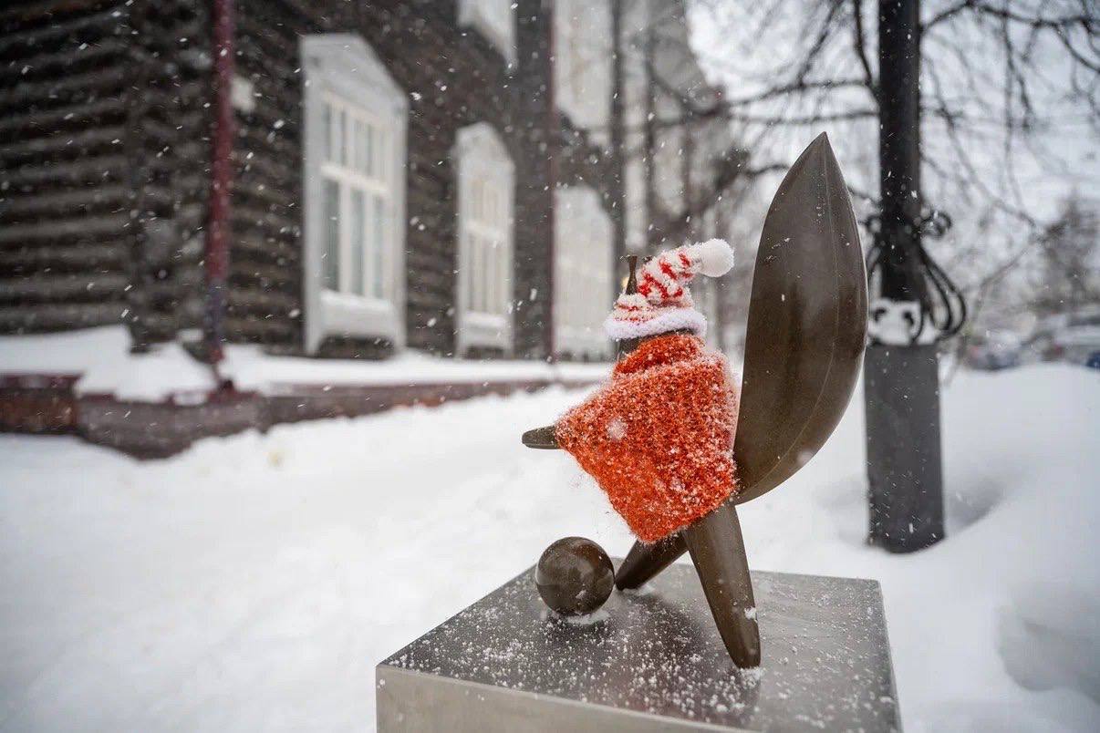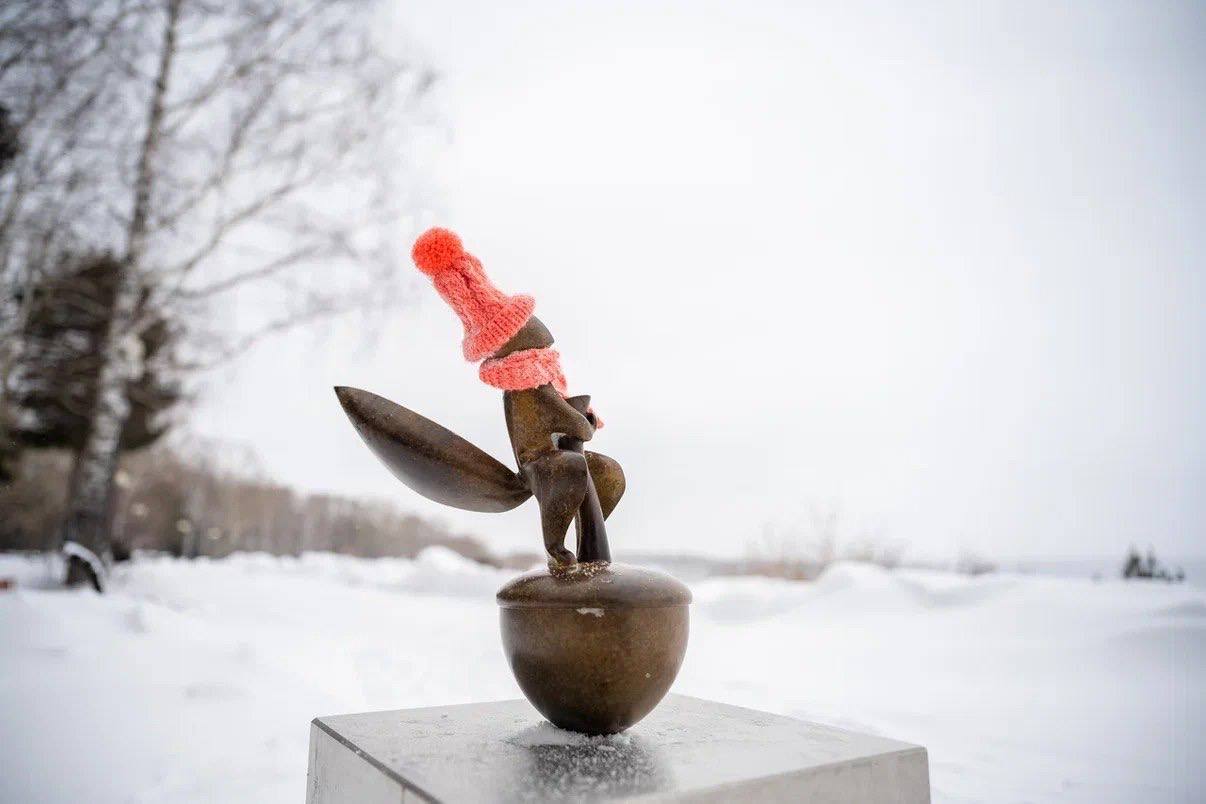 Фигурки обзавелись теплой одеждой, шарфами и шапками, и теперь «на одной волне» встречают самых морозостойких любителей прогулок по Томску.