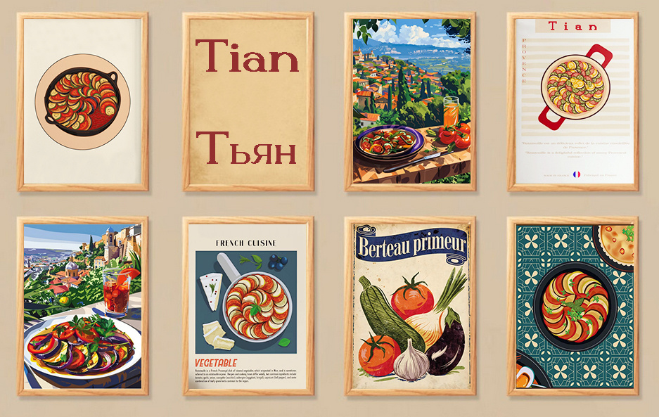 Исследования показывают, что слово «тьян» восходит к провансальскому диалекту и описывает округлую глиняную форму, используемую для запекания. М. Хейро, известный кулинарный критик, подчеркивает, что это блюдо, по сути, было традиционным для домашних кухонь Прованса. Завораживающие сочетания свежих овощей, использующихся в рецепте, позволяют ощутить настоящую суть лета.