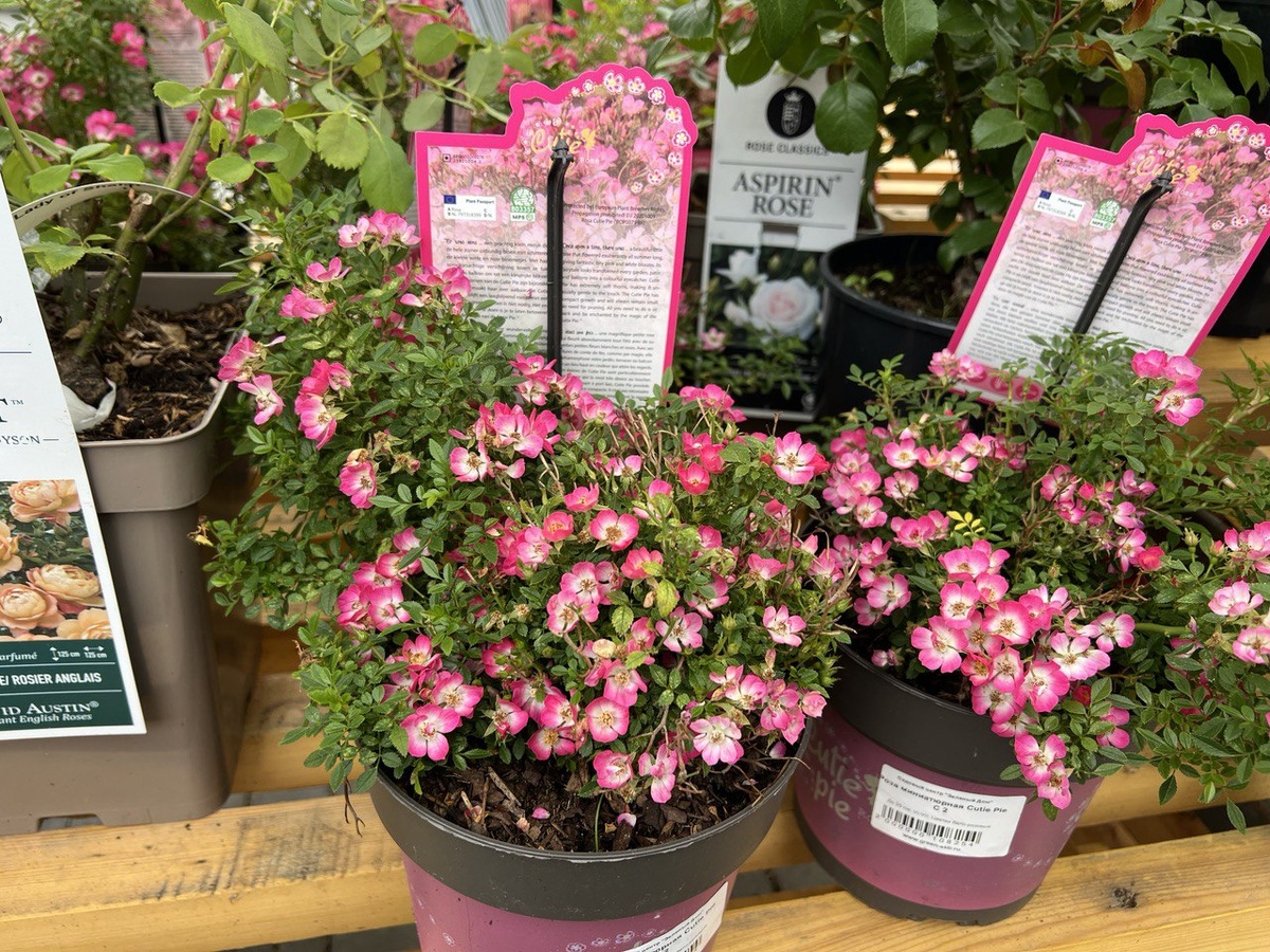 Приобретение Cutie Pie произошло в 2024 году, но несмотря на раннее укрытие осенью, этот сорт не сумел вырасти до заявленных размеров. Как ни посади розу на передний план, она все равно остается незаметной среди более крупных растений. Рост произошло, но он оказался гораздо скромнее ожидаемого. Цветочки, расположенные на низком уровне, не требуют особых усилий для наблюдения, ведь за ними нужно наклоняться, чтобы оценить их красоту.