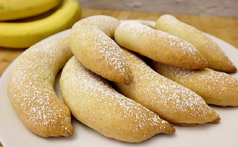 Начинка состоит из спелых бананов, которые обжариваются с сахаром, превращаясь в настоящую сладкую карамель, придающую пирожкам изысканный вкус.