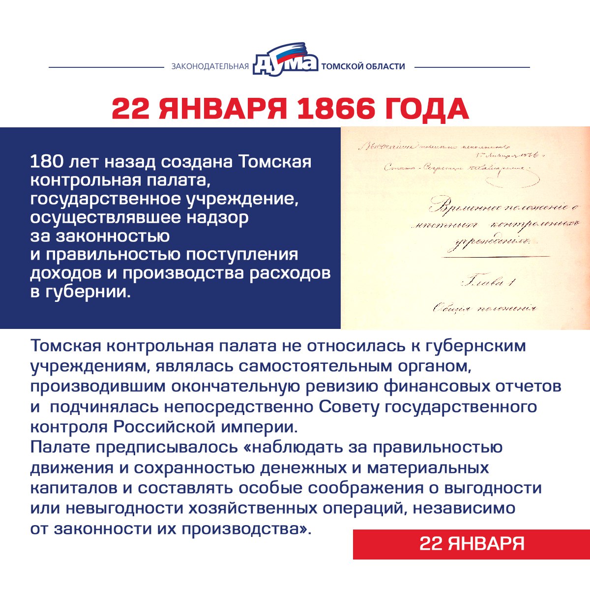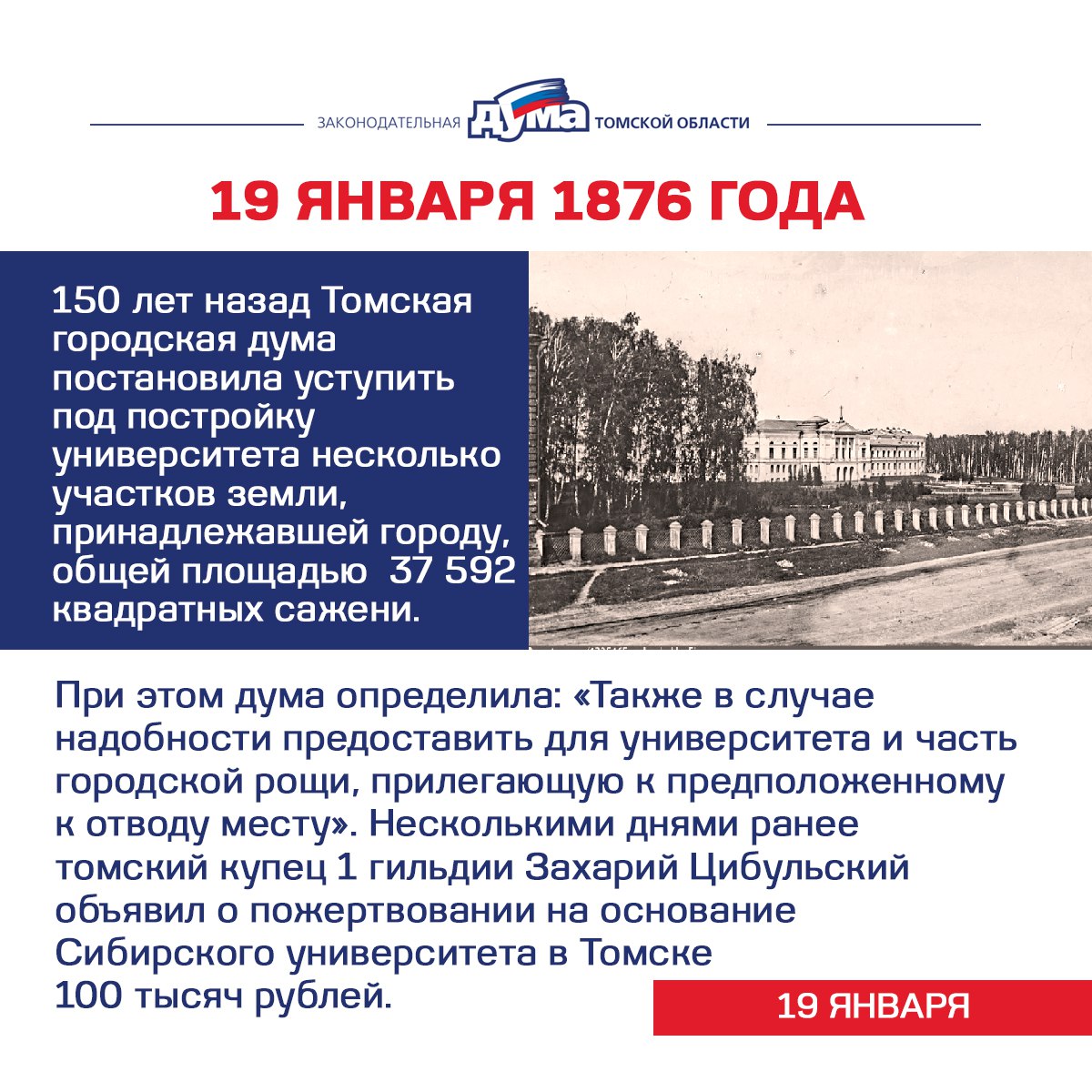 Хронику событий из истории томской представительной власти продолжают памятное решение городской думы о выделении земельного участка под основание университета, юбилей губернской контрольной палаты, обстоятельства «Павловской денежной реформы» на территории региона.