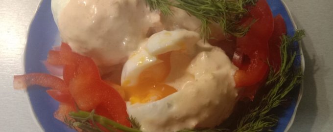 Теперь все готово для подачи! Яйца очищают, укладывают на сервировочную тарелку, заливают соусом и посыпают рубленой зеленью. Это красивое и аппетитное блюдо станет настоящим украшением вашего стола. Важно помнить, что желток в яйцах всмятку остается жидким, поэтому угощаться нужно аккуратно, чтобы не испачкаться. Приятного аппетита!
