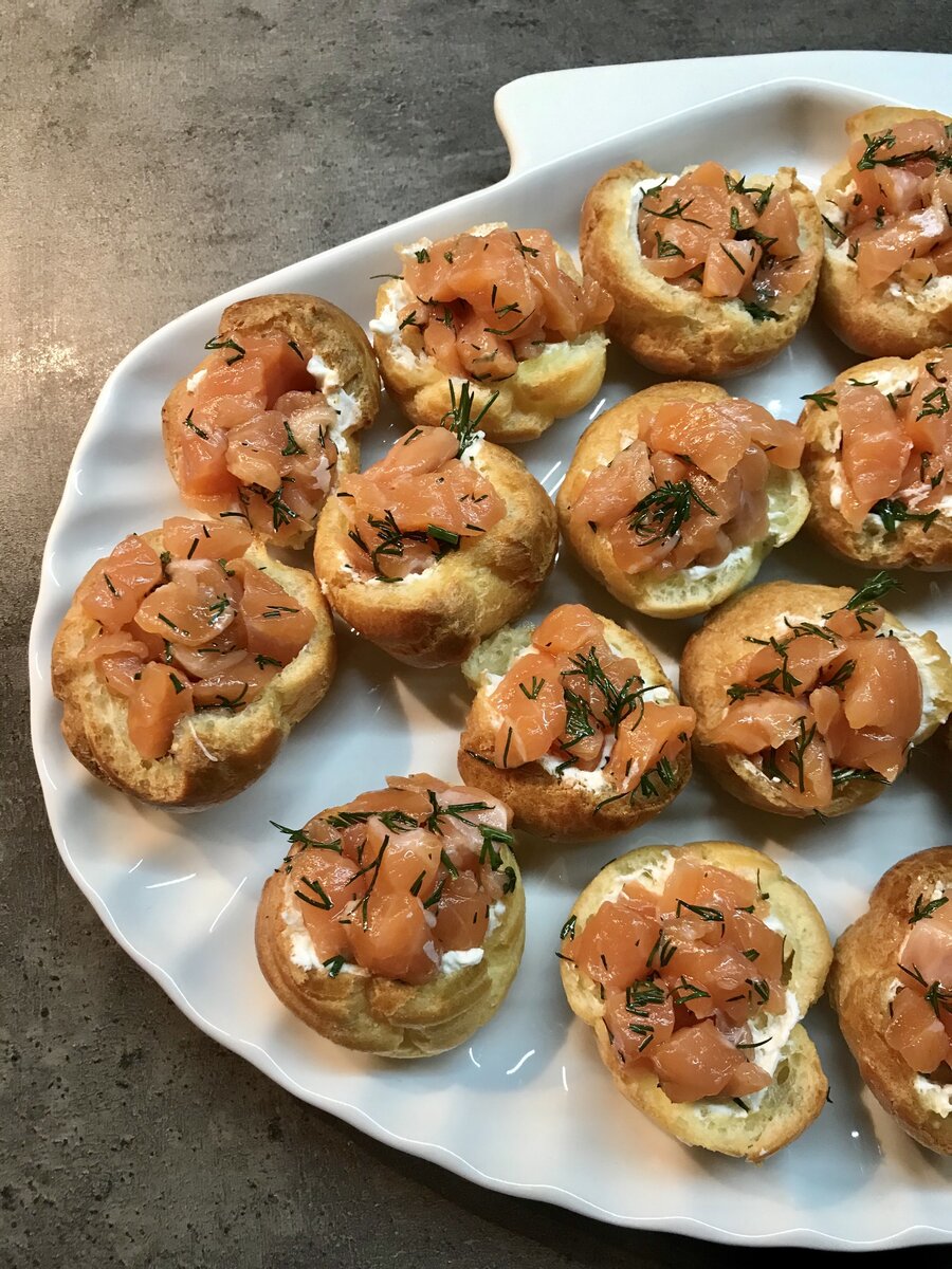 Эти ароматные закусочные профитроли обязательно украсят ваш праздничный стол. Сочетание легкого теста и нежной красной рыбы с сырами создают невероятный вкус, который не оставит равнодушным ни одного гостя.