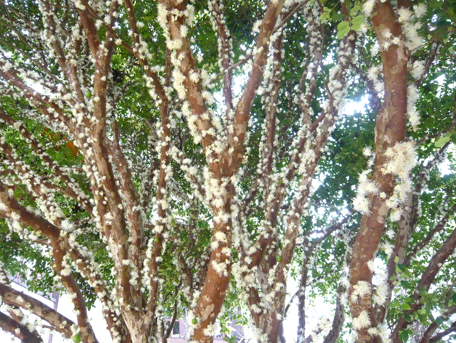 Цветы: Когда жаботикаба цветет, маленькие белые цветы, покрывающие ствол и ветви, издают приятный аромат и создают очаровательное зрелище.