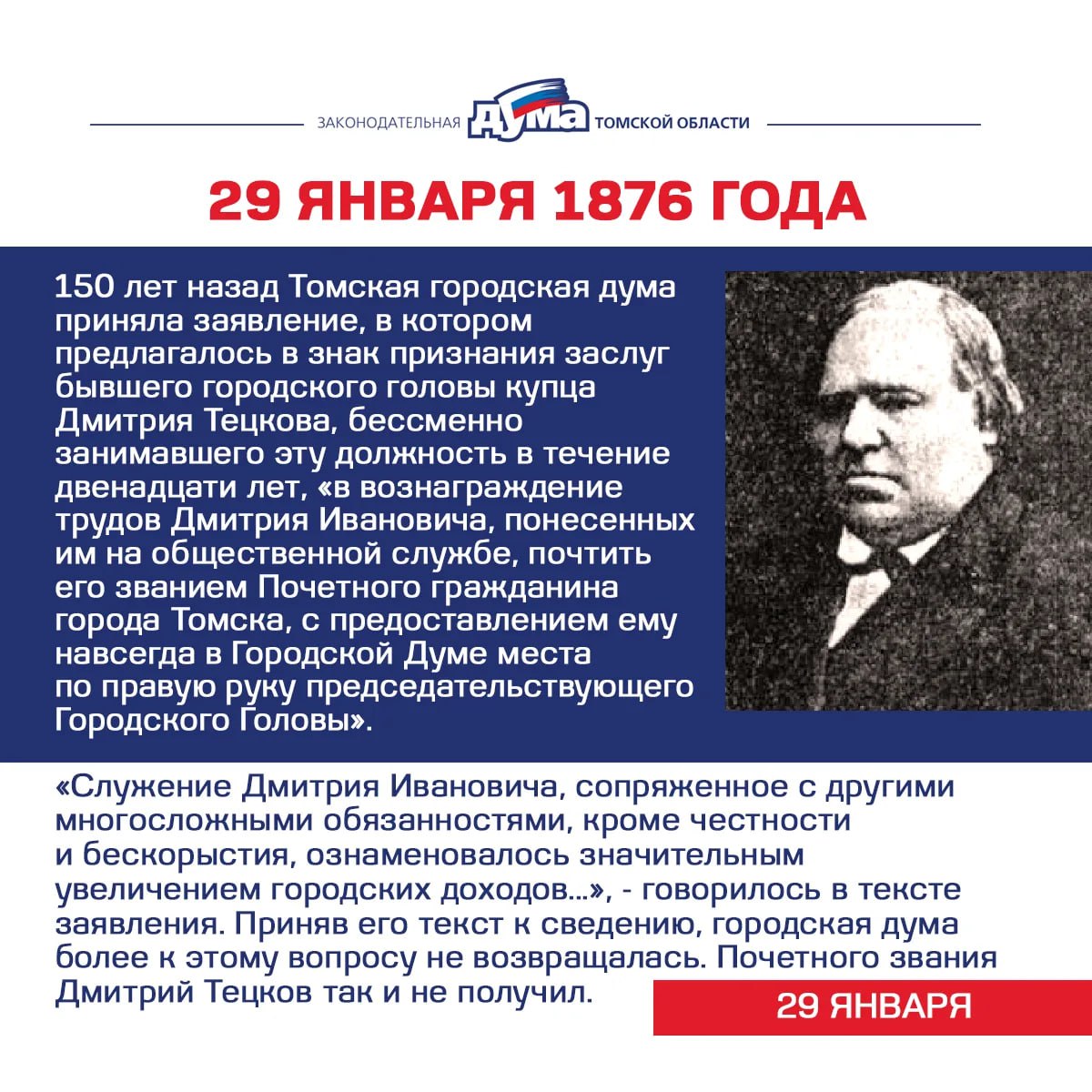Избранные. Даты и события из истории представительной власти Томской области (26 января – 1 февраля)