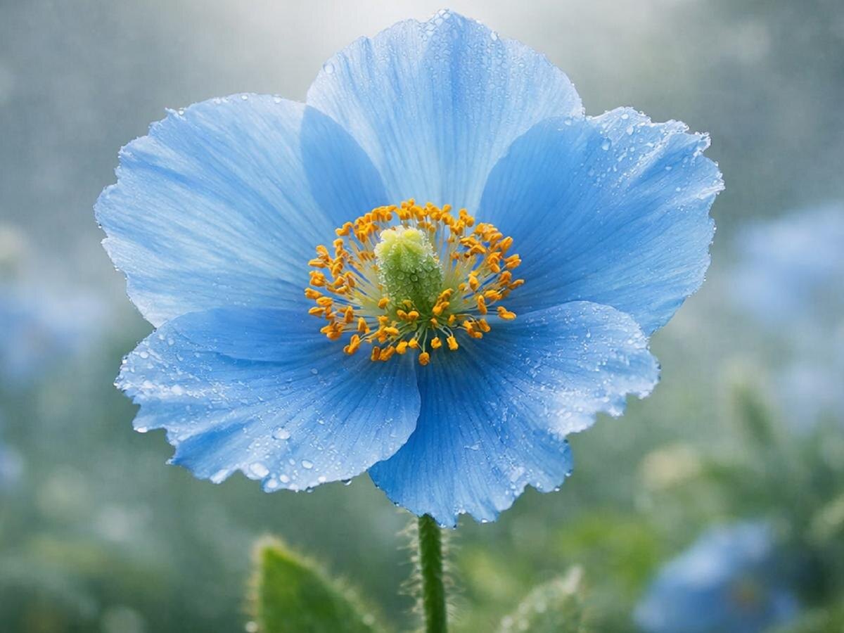 Меконопсис — это многолетнее растение, родом из высокогорий Гималаев. Оно обитает на холодных и влажных лугах, что определяет его высокие требования к условиям жизни. Наиболее заметные виды достигают 60 см в высоту, образовывая аккуратные кустики с большими шелковистыми цветами до 10 см в диаметре. Цветовые гаммы варьируются от нежно-голубого до сиреневого, а в центре цветка яркие золотистые тычинки.