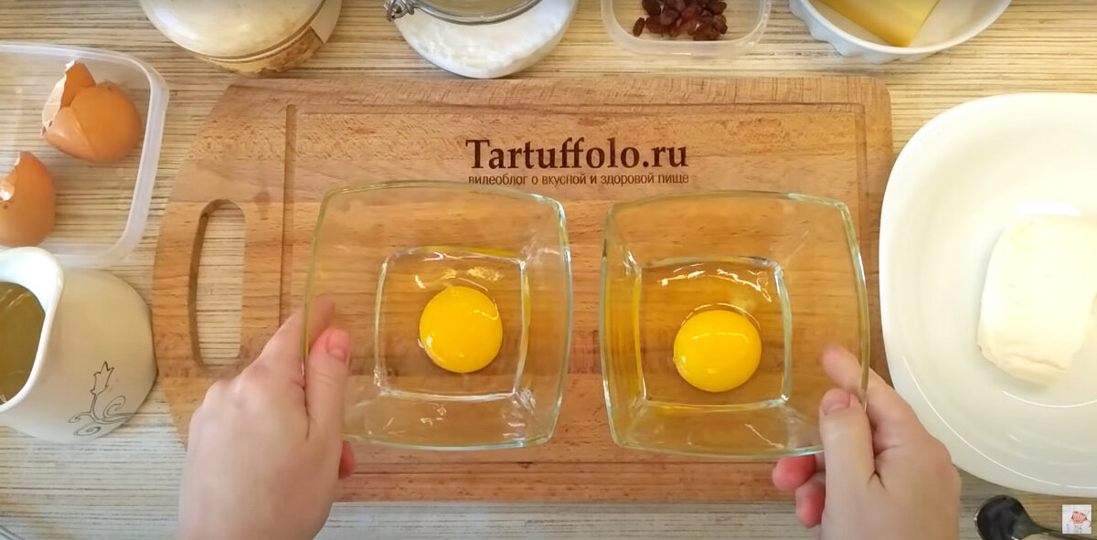 Для начала подготовим все необходимое. Понадобится всего два яйца, которые можно разбить в две разные миски. В одну из них добавляем щепотку соли, а в другую — немного сахарной пудры. Для смягчения смеси в каждую миску добавляется по чайной ложке молока. Далее, чтобы не запутаться в сладких и соленых ингредиентах, стоит добавить в сладкие яичные смеси немного изюма.