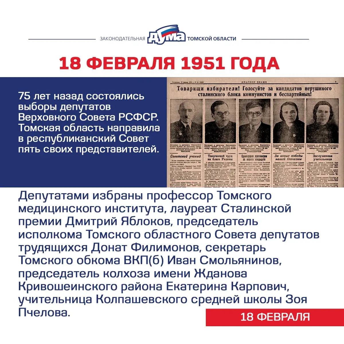 Избранные. Даты и события из истории представительной власти Томской области (16-22 февраля)
