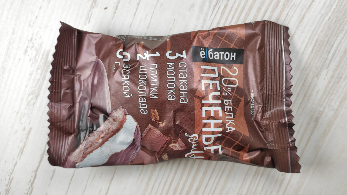 Первое на очереди печенье от бренда "ёlбатон" с шоколадным вкусом. Несмотря на привлекательный внешний вид, на вкус оно оказалось невыразительным и слишком сладким. Суховатая текстура и отсутствие яркого шоколадного аромата также оставили желать лучшего. Возможно, другие варианты этого печенья окажутся более удачными.