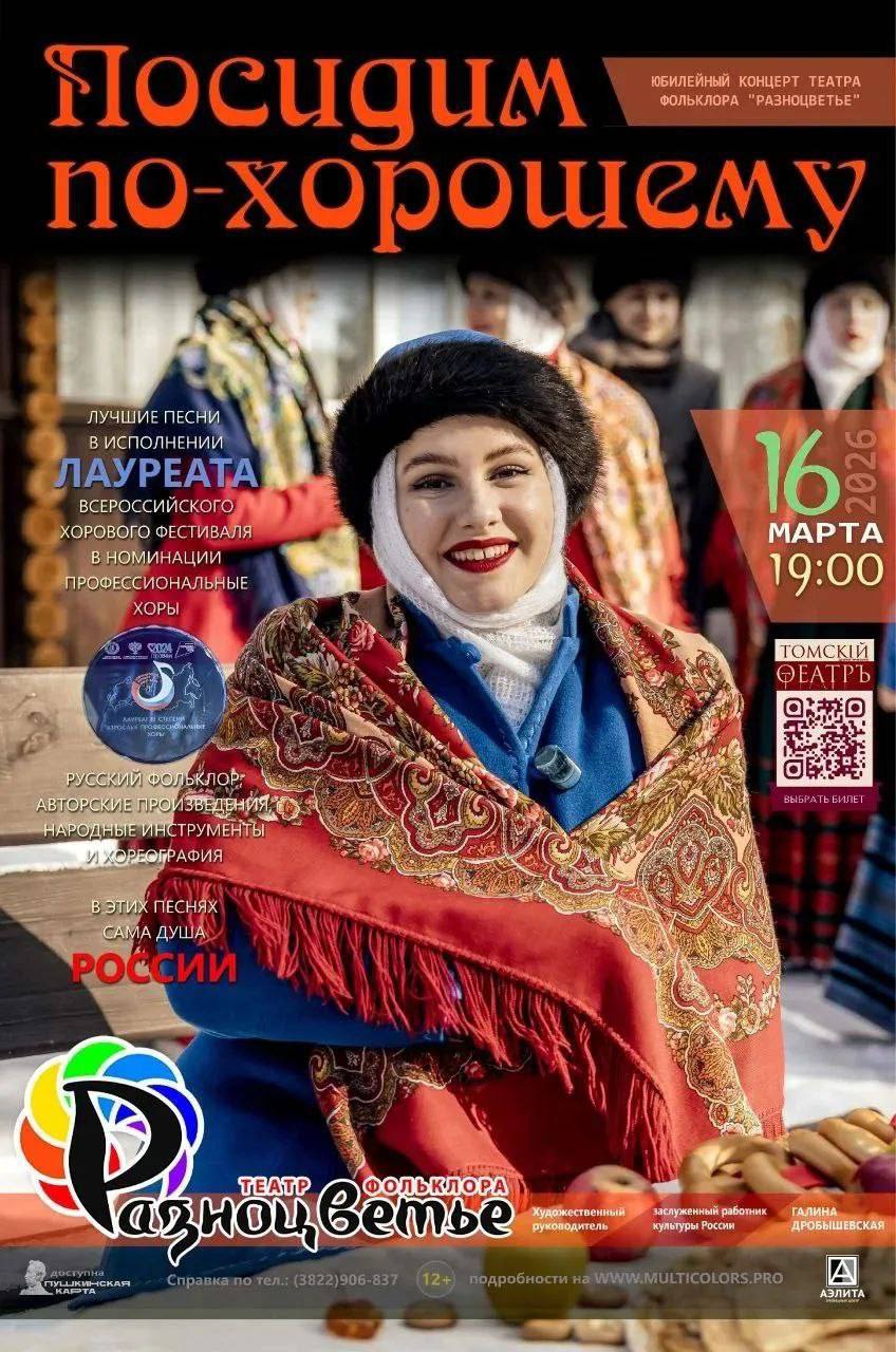 В программе концерта старинные казачьи песни и пляски, проникновенные мелодии военных лет, хранящие память поколений, лирические хороводы и весёлые кадрили Томского Приобья. В исполнении театра фольклора «Разноцветье» также прозвучат яркие композиции советских и современных авторов, бережно сохраняющие связь с народным творчеством. Особое внимание уделено патриотическим песням, вдохновляющим гордостью за великую историю и красоту нашей необъятной Родины.