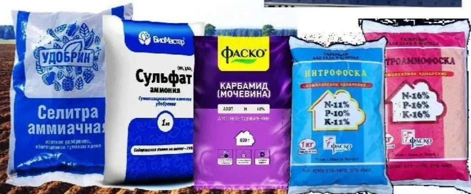 - Аммиачная селитра (приблизительно 35% азота). Применяется при весенней обработке почвы. Возможно смешивание с суперфосфатом и калийной солью.