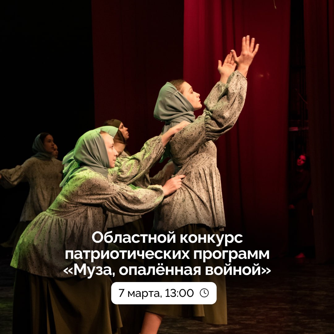 В эту субботу, в 13:00, в Доме народного творчества «Авангард» (ул. Б. Куна, 20) состоится областной конкурс патриотических тематических программ «Муза, опалённая войной».