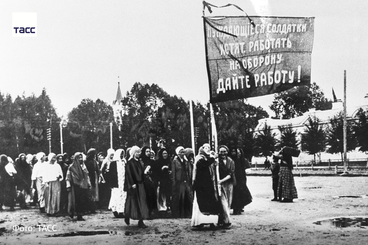 Демонстрация солдаток. Требование на растяжке: «Дайте работу!»