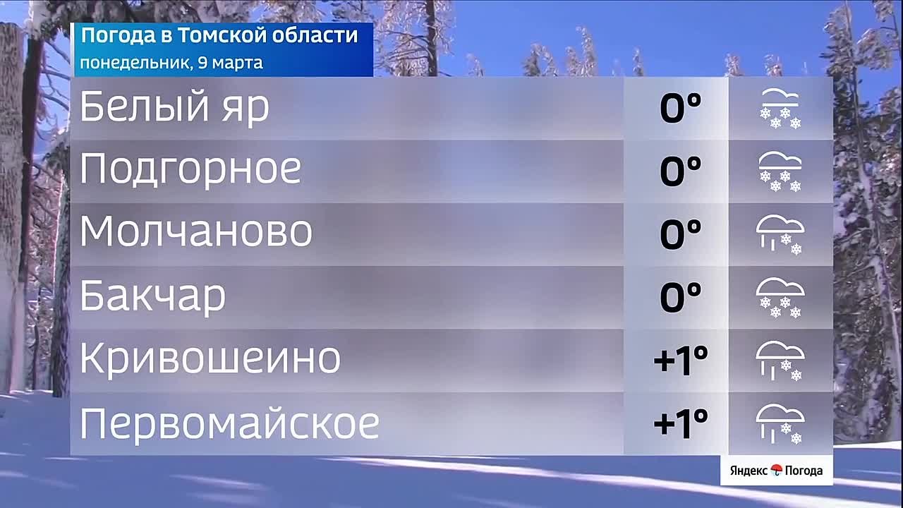 Доброе утро! Прогноз погоды в Томской области.