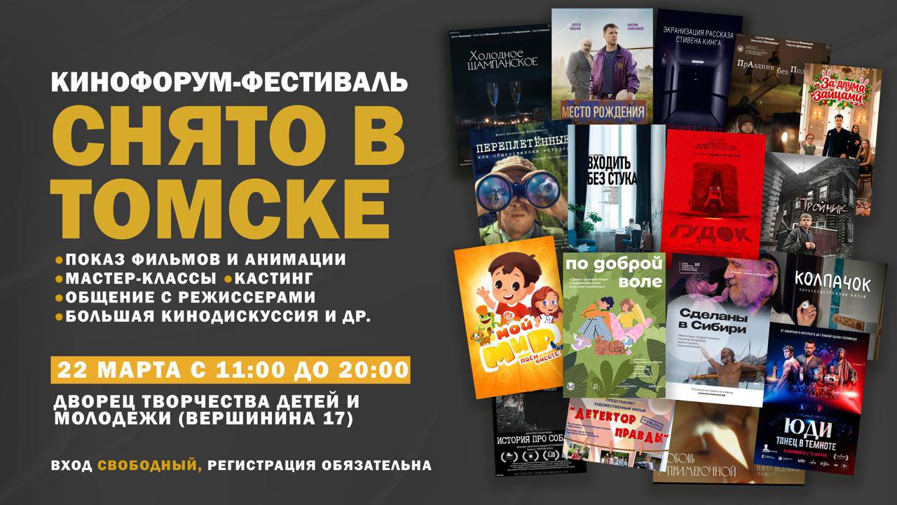 Кинофорум «Снято в Томске» в воскресенье, 22 марта.