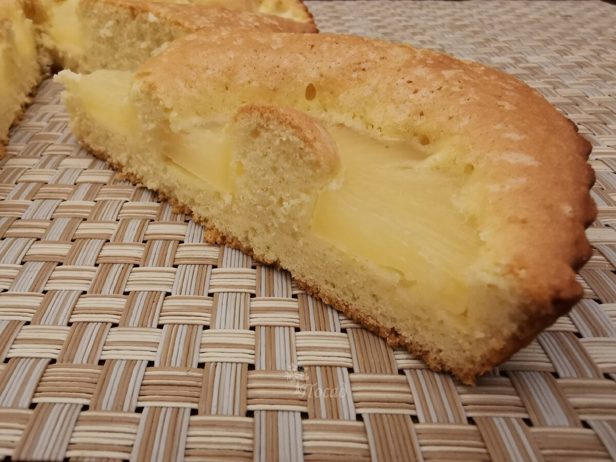 Вдохновившись успехом, был создан ещё один вариант: шарлотка с кольцами ананаса. Однако здесь стоит остерегаться: ананасы разных брендов могут различаться по сладости. Если первый раз использовался умеренно сладкий ананас, то второй оказался слишком насыщенным.