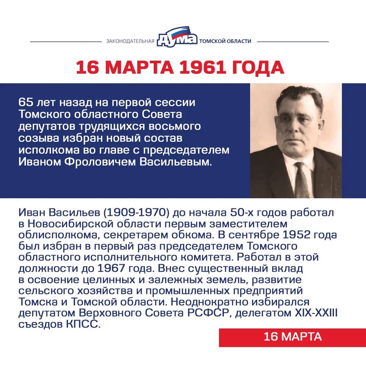 Избранные. Даты и события из истории представительной власти Томской области (16 — 22 марта)