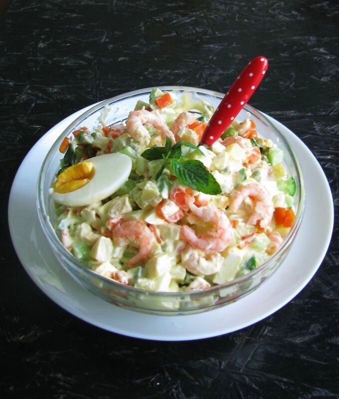 Салат Оливье с креветками и свежим огурцом: новый взгляд на классический рецепт