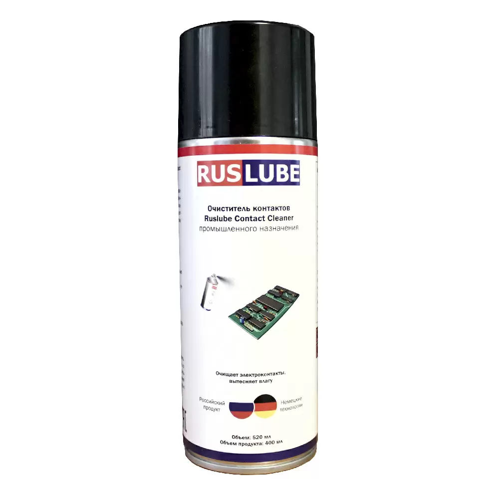 Ruslube Contact Cleaner разработан для комплексной очистки и обезжиривания токопроводящих элементов. Продукт быстро испаряется и эффективно удаляет коррозийные отложения, масла и жир. Он не наносит вреда лакокрасочным покрытиям, резине и пластиковым материалам.