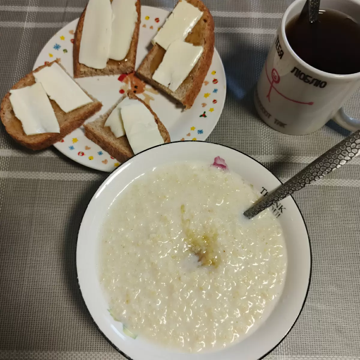 Весна радует не только погодой, но и новыми кулинарными сочетаниями. Завтрак начался с пшенной каши, изящно дополненной медом, а также легкими бутербродами из особого «деревенского» хлеба, купленного в местном магазине.