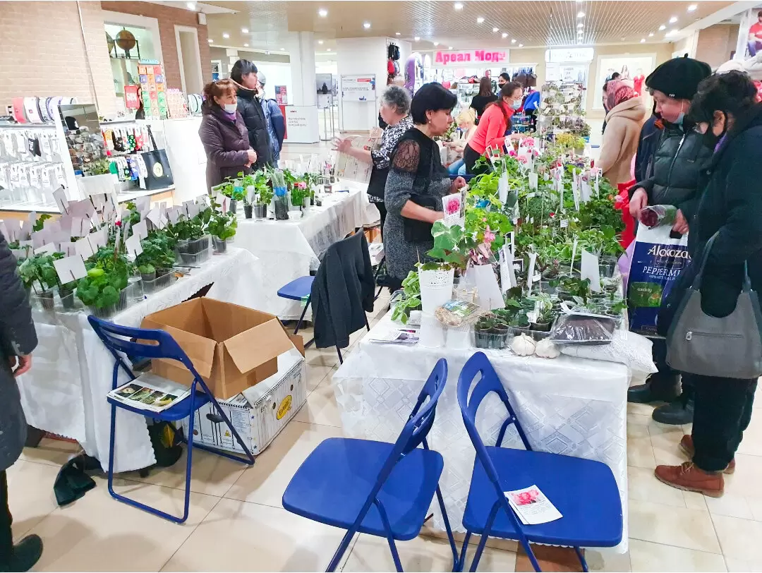 Некоторые бизнесмены позаботились о почти полноценном оформлении своих прилавков: например, продавцы фиалок представили не только маленькие листочки, но и зрелые цветущие растения, что придавало атмосфере живость и яркость.
