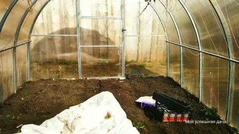 С 10 апреля укрытия были убраны, и впереди запланирован посев следующей грядки уже в открытом грунте. В теплице пришло время высаживать рассаду томатов и перца.