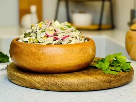 Этот салат с языком станет настоящим украшением новогоднего стола, радуя друзей и близких своим вкусом.