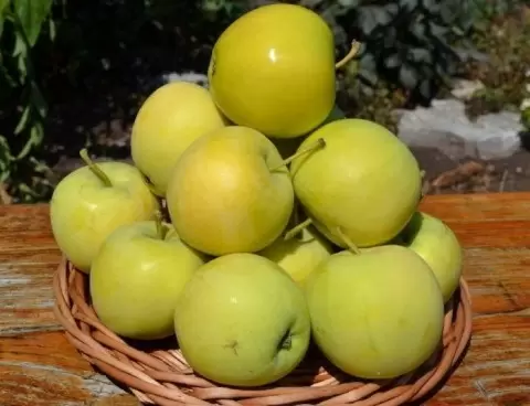 Что касается плодов, они крупные (100-150 граммов) и имеют округлую форму с легкой ребристостью. Окраска плодов варьируется от нежно-желтого до почти белого, без румяна. Вкус плодов великолепный, кисло-сладкий с дегустационной оценкой 4.4 балла. Мякоть нежная и сочная, долго сохраняет свежесть.