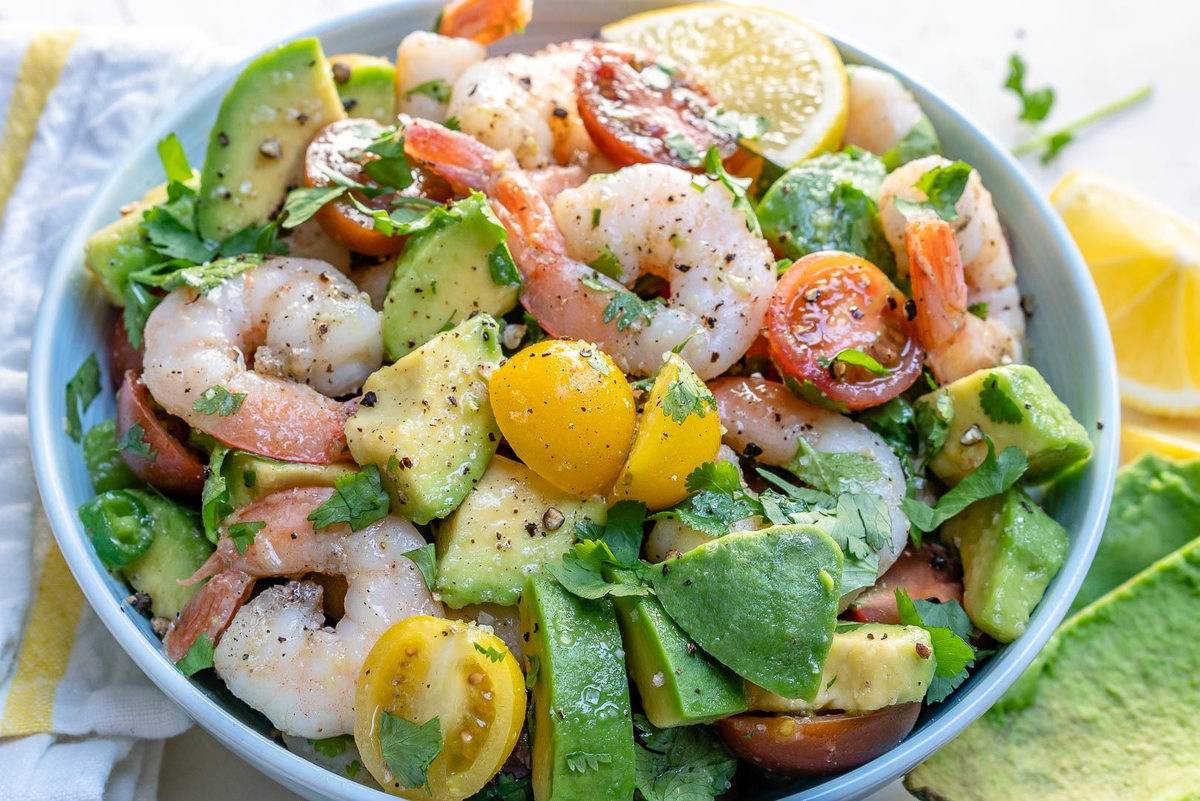 Сочетание нежного авокадо, ярких помидоров черри и ароматных креветок создает удивительный вкус и текстуру. Этот салат не только богат витаминами и антиоксидантами, но и приятно удивляет своим балансом легкости и насыщенности.