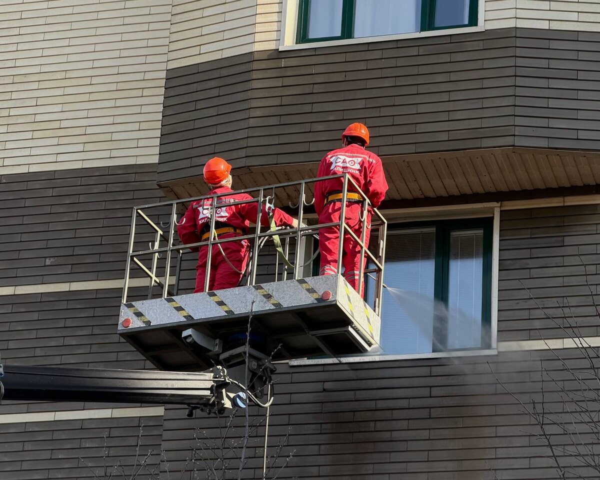 Работы проводятся с использованием автовышек, и все процессы проходят при температуре выше нуля. Это позволяет не только обеспечить качественное выполнение заданий, но и избежать неприятностей, связанных с замерзанием моющих средств.