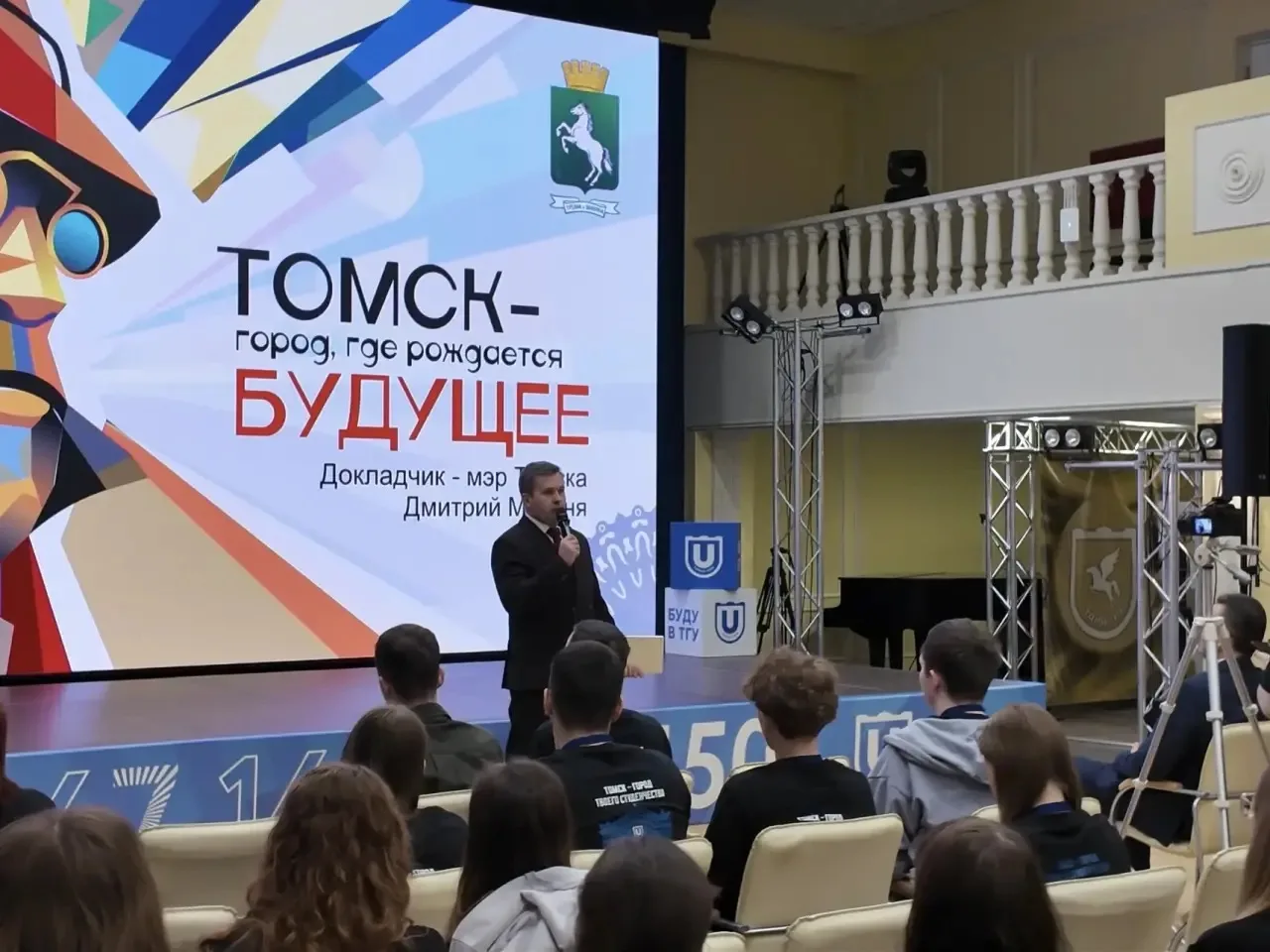 На открытии 11-го форума ТГУ «Таланты Сибири» мэр Томска Дмитрий Махиня поприветствовал выпускников школ, рассказал о городе и ответил на вопросы участников форума.